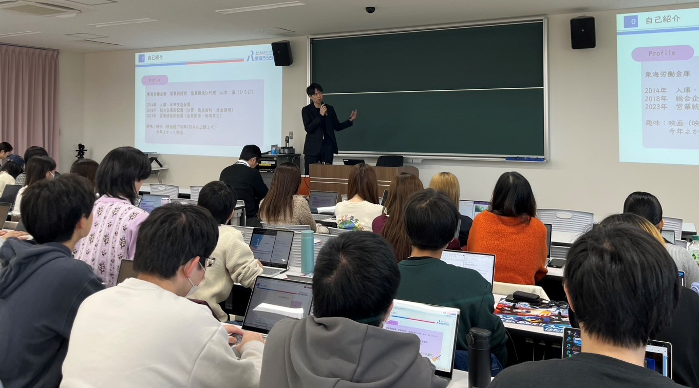 2025年12月17日、三重大学人文学部の洪 性旭(ほん・そんうく)准教授による講義「ソーシャルビジネス論」にて、東海ろうきんがゲスト講師として講演を行いました。